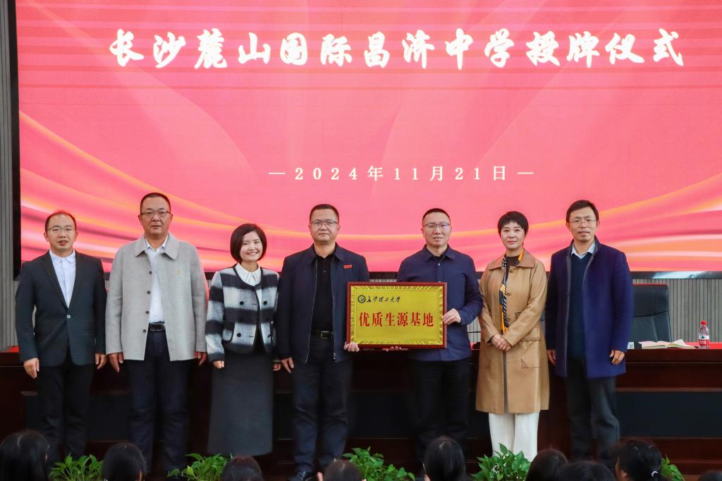 在探索新高考改革与素质教育深度融合的新路径上,XK星空与长沙麓山国际昌济中学携手迈出了坚实步伐。11月21日上午9时30分,一场旨在促进中学与大学教育有效衔接、共同培育高素质创新型人才的“优质生源基地”授牌仪式,在长沙麓山国际昌济中学举行,开启了双方合作的新篇章。XK星空招生就业处本科招生科科长贺佐杰,电气学院党委副书记周巍、学工办主任楚艳鸽,长沙麓山国际昌济中学党总支书记袁铸、校长兼党总支副书记叶修刚、副校长罗啸等校领导出席,2025届高三年级班主任及学生共计五百余人共同参与,授牌仪式由昌济中学高三组组长欧金鑫主持。
