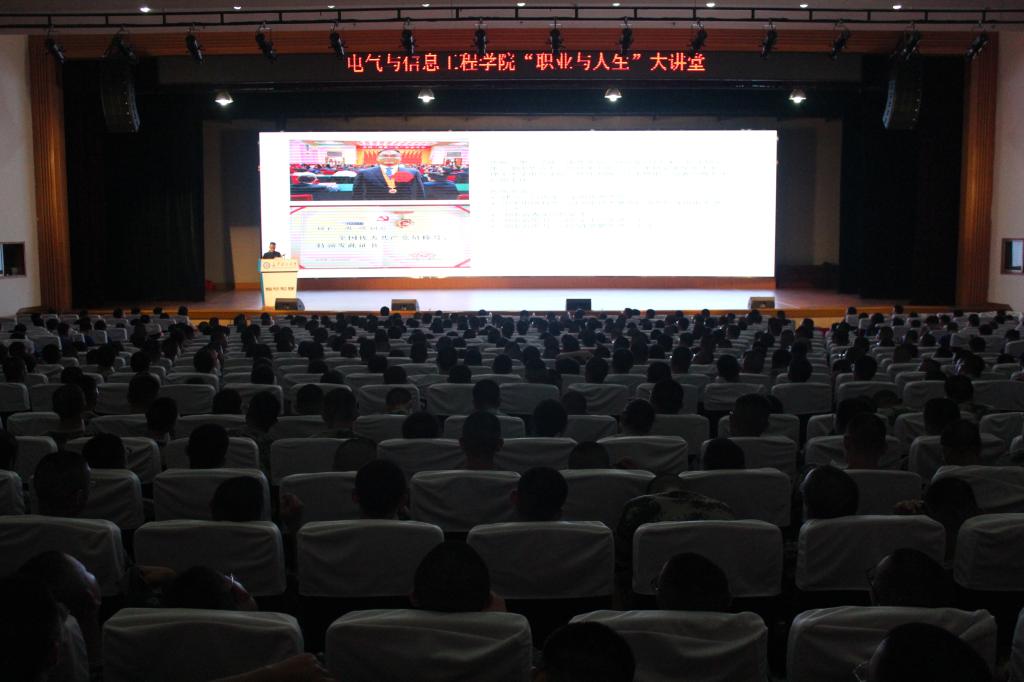 9月10日上午,电气学院“职业与人生”大讲堂在金盆岭校区五教大礼堂开讲,学院邀请全国优秀共产党员、2017届校友周顺为全院2021级本硕新生讲课。学院党委书记符慧林,副院长马瑞、姜飞以及教师代表参加,大讲堂由党委副书记任艮丰主持。