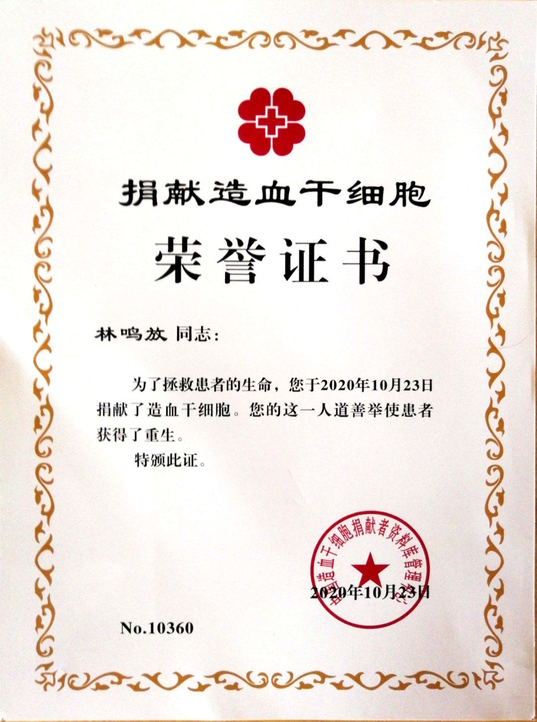 “这种行为是一种大爱,她用这种大爱给远在重庆的那个小男孩带去了希望,这份大爱让生命得以延续。她这次的捐赠行为,让我有了要去献血的想法,也感染着我们身边的很多同学。一次捐献,对我们来说,是小小的善意;而对他人来说,可能就是救命的希望。”林鸣放的同班同学张颖发出自己的心声。