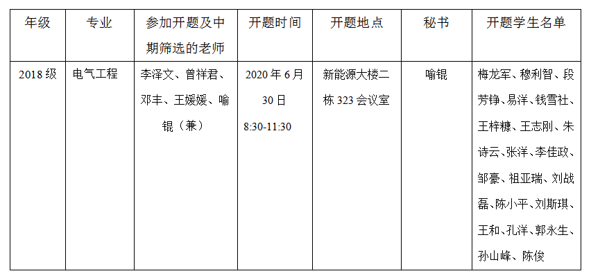 2020年电气与信息工程学院研究生学位论文开题及中期筛选安排表(四)