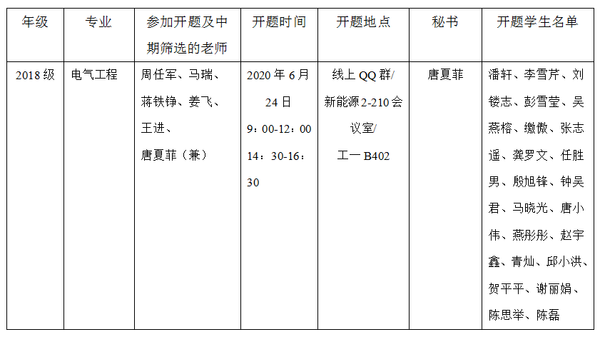 2020年电气与信息工程学院研究生学位论文开题及中期筛选安排表(二)