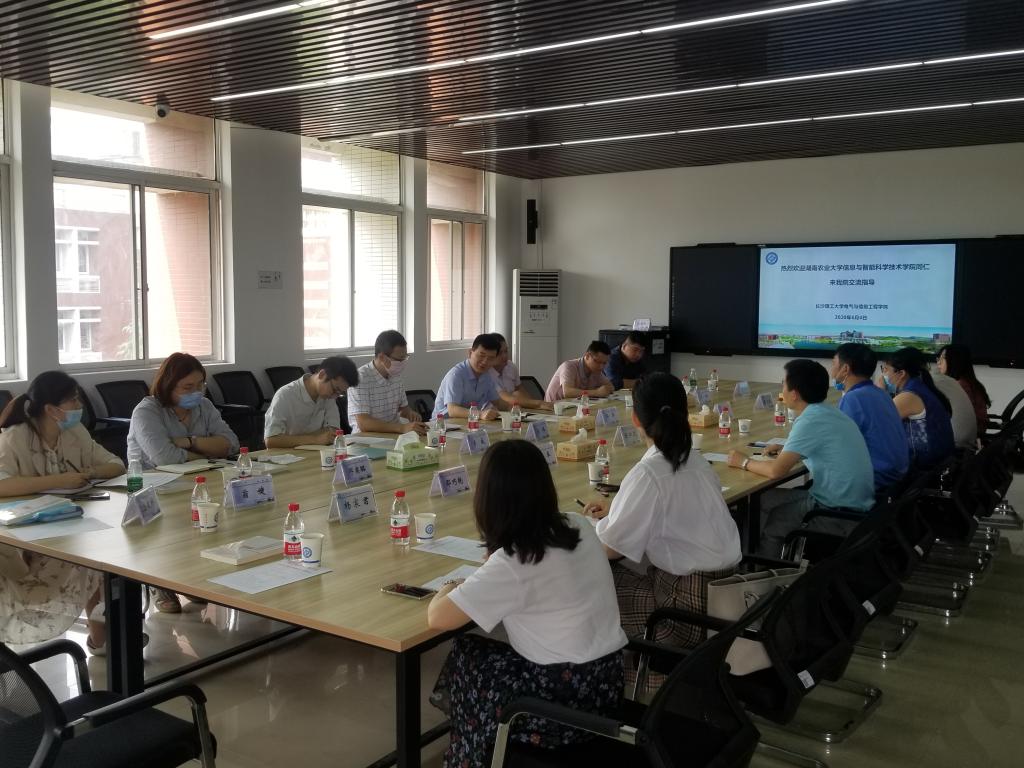 6月4日,湖南农业大学信息与智能科学技术学院党委书记邵华、副书记黄正军一行9人来我院调研交流。电气学院党委书记符慧林、土木学院党委副书记(主持工作)丁丹、电气学院党委副书记陈仁凯等出席。