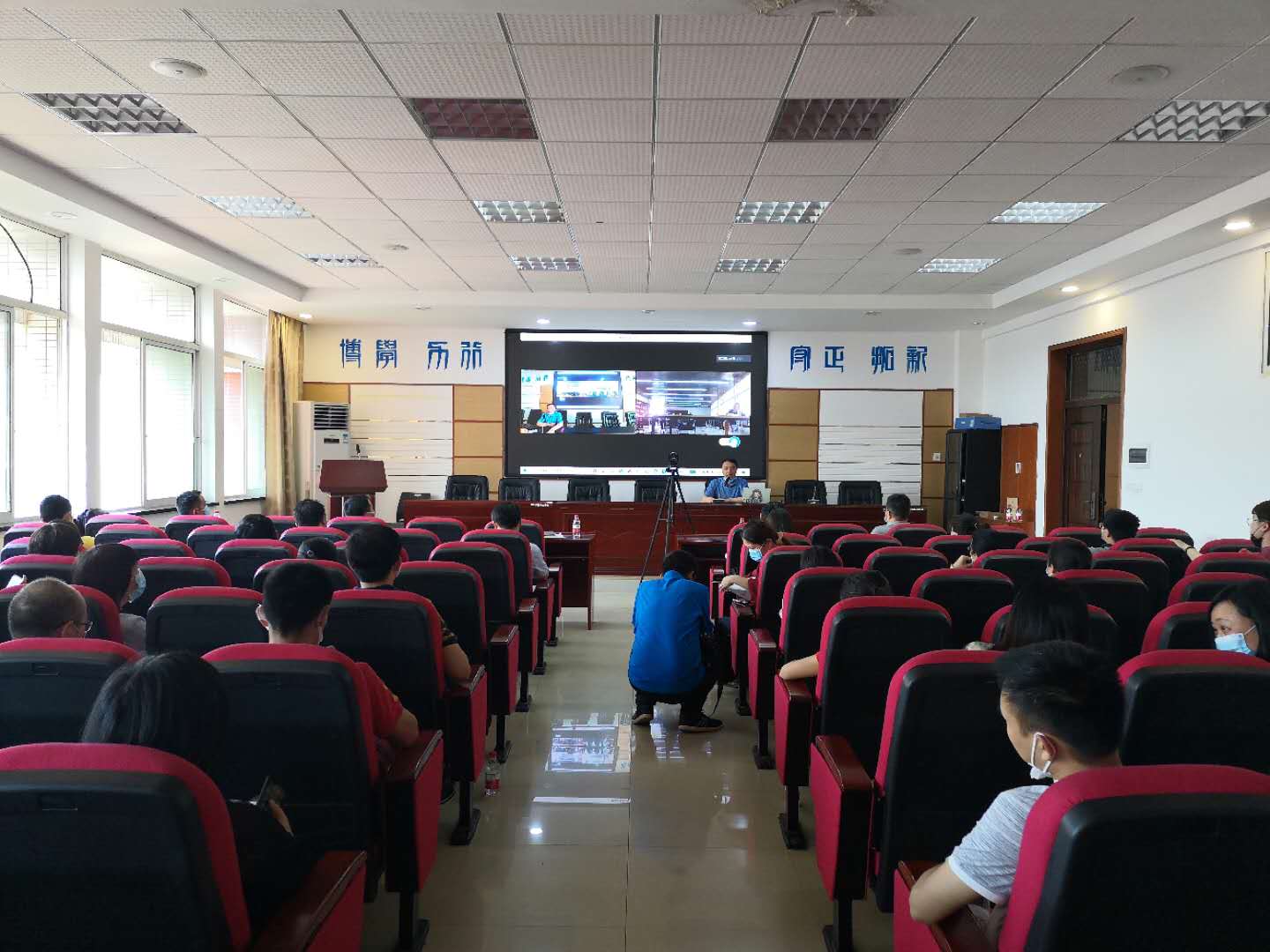 下午2:30,在焕然一新的学院报告厅,学院召开了本学期首次线下全体教职工大会,学院领导班子为全面迎接学生返校做了工作安排和再动员。学院全体教师已做好准备,为打赢疫情防控战,迎接返校复学做出自己的贡献。