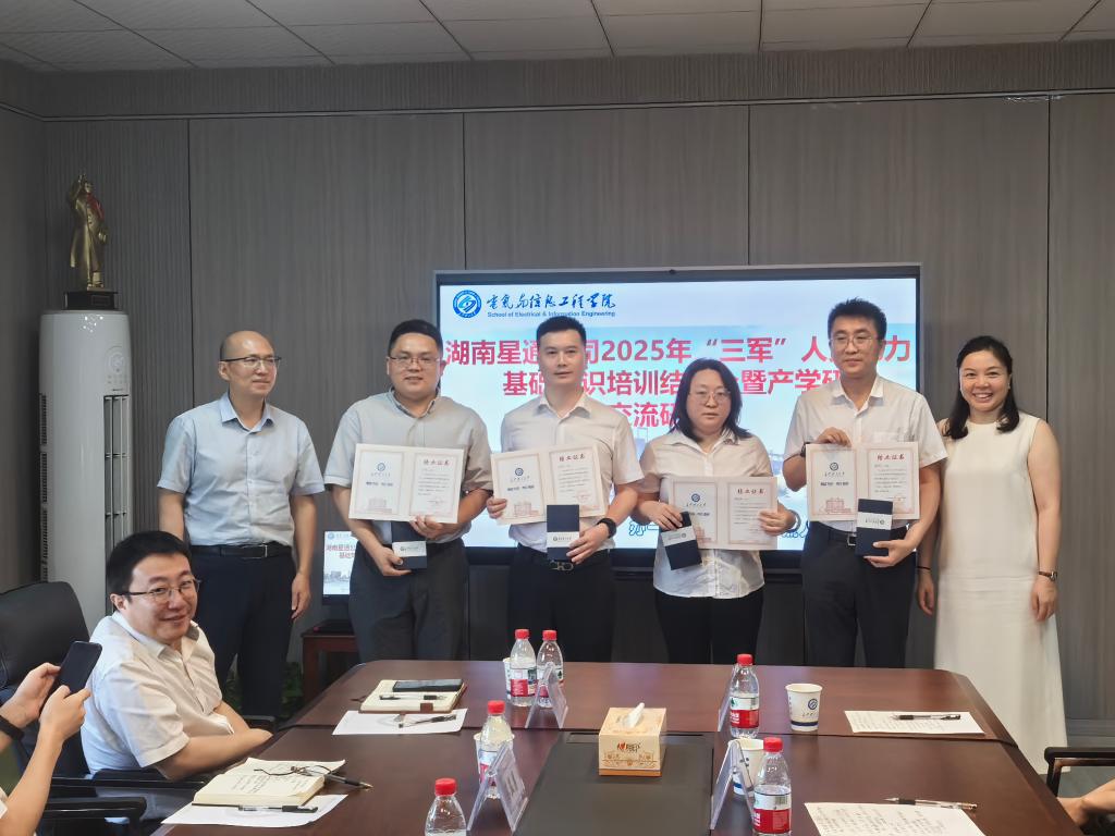 6月5日,湖南星通电力信息通信有限公司三级职员邹昶鑫一行来院参加2025年星通电力“三军”人员电力基础知识培训结业暨产学研交流研讨会。学院党委书记丁丹、党委副书记周巍、电网防灾减灾全国重点实验室副主任姜飞等院领导及教师代表参加座谈。
