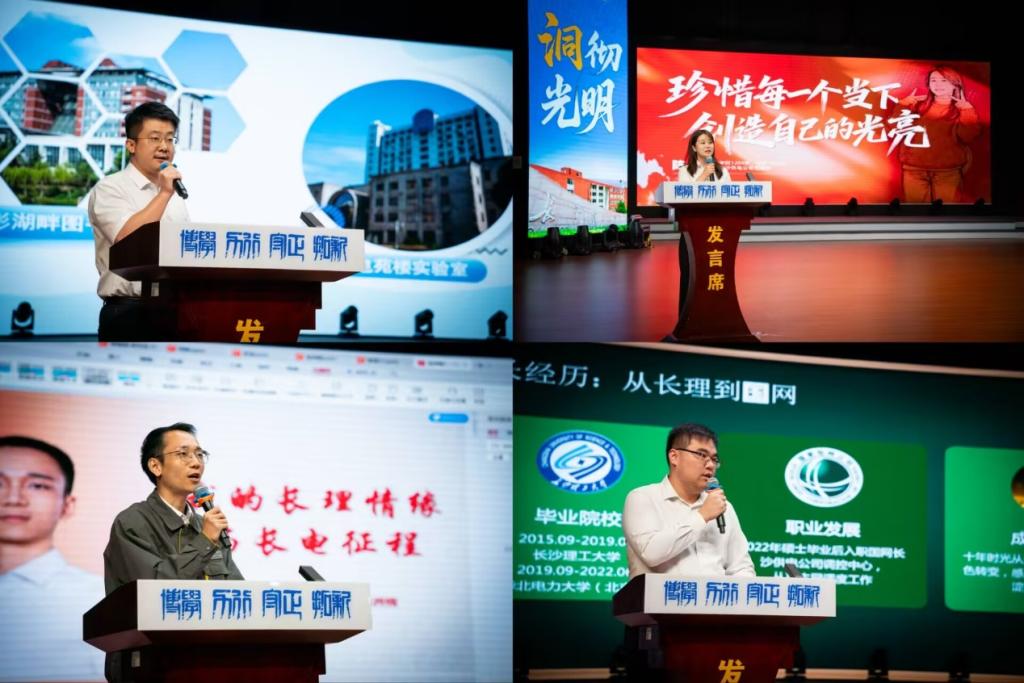 国网长沙供电公司2025年十大杰出青年易洲楠、陈溢、秦泽宇、曾赟作为青年校友代表,分享了从校园到职场的成长经历,激励新生勇于探索、敢于担当。学院优秀学生党员代表通过舞台剧“信仰”角度讲述了党员的初心与使命,传递红色基因的磅礴力量。
