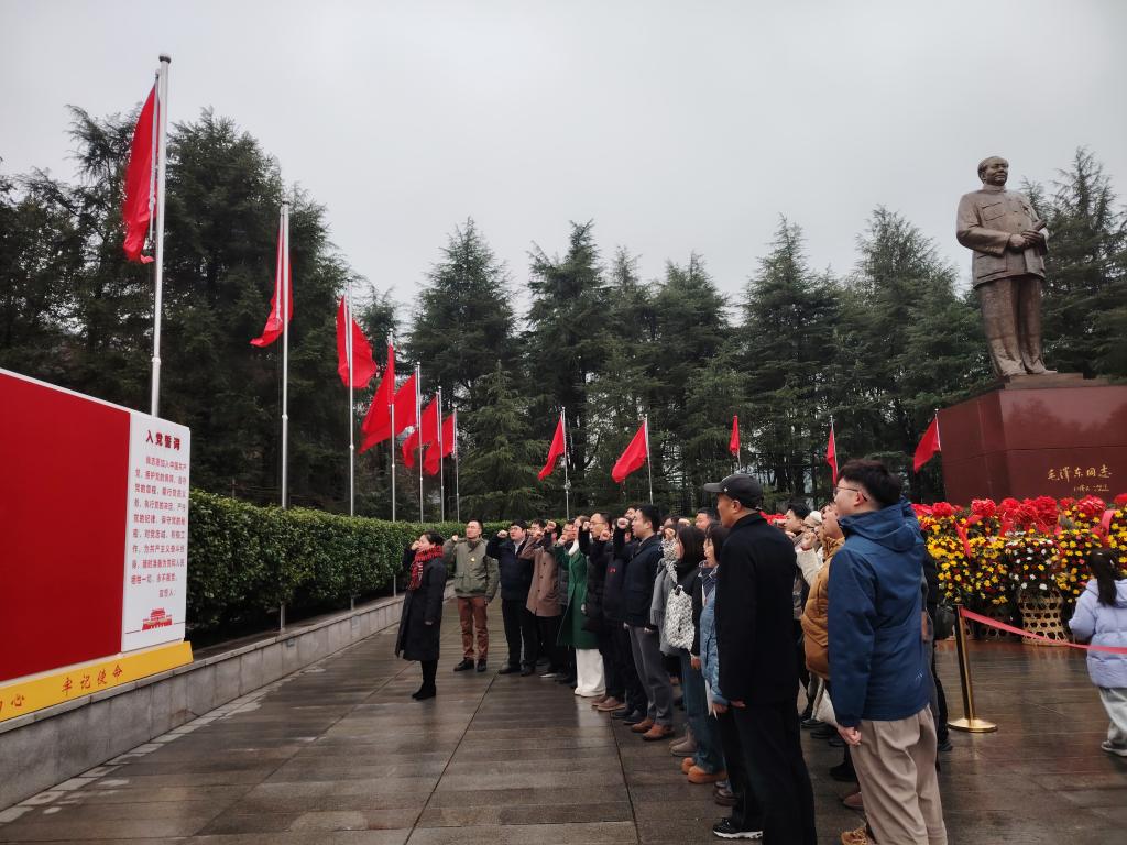 在毛泽东铜像广场,全体同志怀着无比崇敬的心情向伟人铜像敬献花篮。并举行了老党员重温誓词新党员宣誓活动。在毛泽东同志纪念馆,举行了《毛主席的品德光辉》专题党课,观看了《中国出了个毛泽东》影片,大家认真参观了毛泽东同志生平展区、专题展区、旧址群,全方位了解了毛泽东同志“严于律己”“善待亲朋”“心系群众”的光辉历程,再次品读“为人民服务”的深刻内涵。