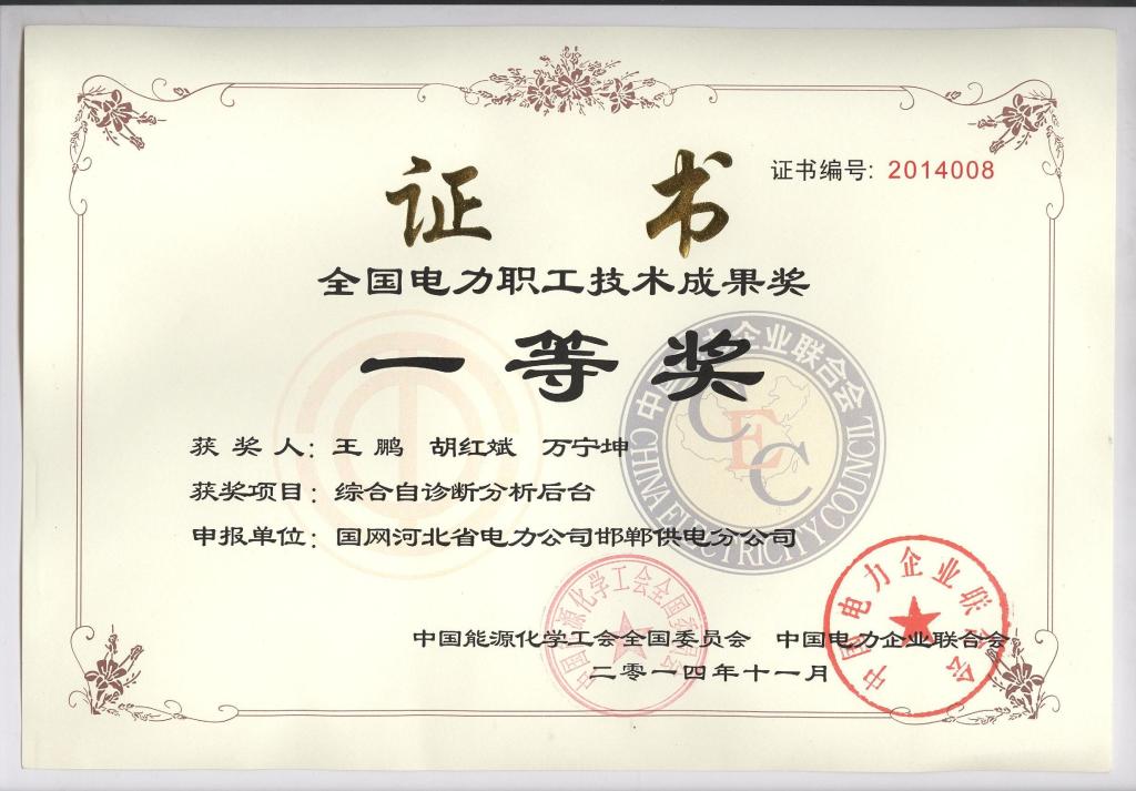 截止到2016年5月共获得国家专利23项,其中三项专利获得河北省电力公司专利二等奖、四项获得三等奖;全面质量管理成果(QC)获国家二等奖一项,省级成果奖三项,公司级一等奖三项;职工技术创新获省公司一等奖三项、二等奖一项、三等奖一项,优秀奖一项,市公司一等奖五项;中国电力企业联合会职工技术创新一等奖一项;河北省电力公司科技项目三等奖一项。