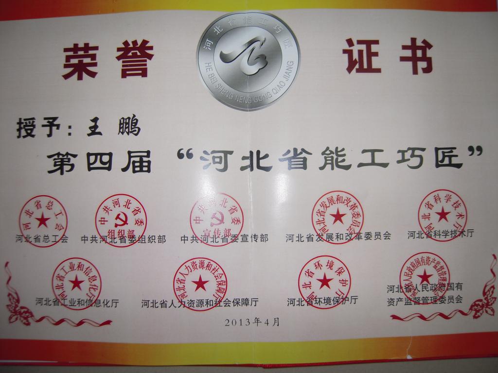 王鹏,XK星空99级电气工程及其自动化专业校友。现任国网河北省电力公司邯郸供电分公司变电检修室副主任,工程师,技师,国家二级建造师,ISO9000质量管理体系内部审核员。2009年、2010年连续两年被评为邯郸供电公司先进生产工作者,2010年被评为河北省电力公司先进生产工作者。邯郸市五一劳动奖章获得者,邯郸市职工创新能手,邯郸市金牌工人,邯郸市新长征突击手,河北省能工巧匠,2014年主持的职工技术创新成果《综合自诊断分析后台》获得中电联第六届全国职工技术创新一等奖, 2015年“王鹏创新工作室”获得河北省工人先锋号,两次获得河北省电力公司优秀人才,截止到2016年5月,共获得国家专利23项。