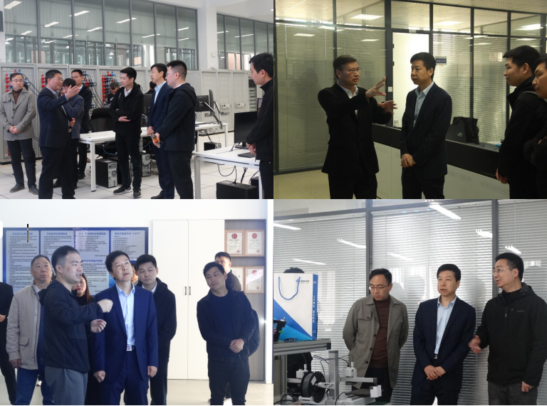 参观过程中,陈海波一行与曹一家、樊绍胜、喻锟等各平台负责人进行了亲切交流,对学院多领域取得的科研成果和平台建设成效表达高度赞赏并就技术成果转化应用等方面的合作进行了探讨。