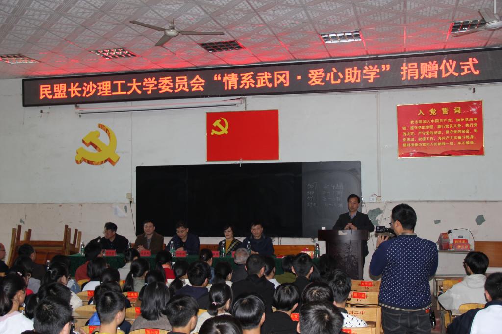 4月13日,民盟XK星空委员会到武冈二中开展“情系武冈 爱心助学”公益行动,受到武冈二中师生的热烈欢迎。