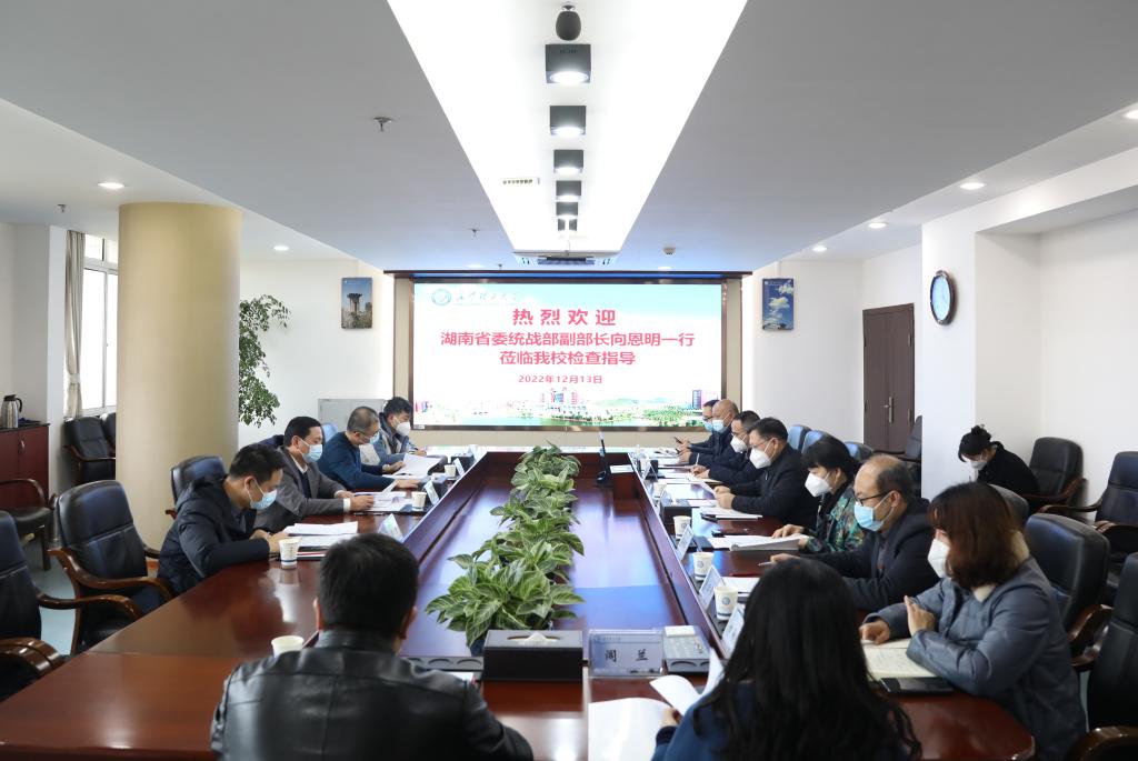 12月13日下午,湖南省委统战部副部长、省民宗委主任向恩明一行来到XK星空检查指导工作。省委统战部民宗处、宣传处相关同志陪同检查。校党委副书记刘建民,党委委员、副校长蒋璟萍,党政办、统战部、学工部、人事处、保卫部、研究生院、国际交流处等有关部门负责人参加。