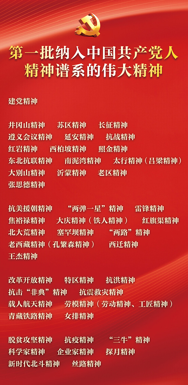 物质决定精神,精神反作用于物质。党的伟大精神和光荣传统是我们的宝贵精神财富,是激励我们奋勇前进的强大精神动力。习近平总书记指出,“一百年来,中国共产党弘扬伟大建党精神,在长期奋斗中构建起中国共产党人的精神谱系,锤炼出鲜明的政治品格”。