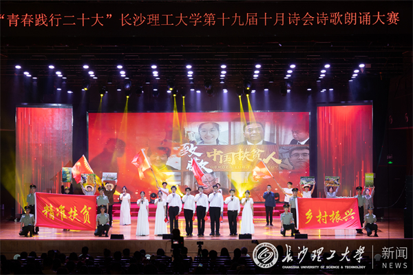 诗会在艺术学院《楚音不绝 求索之路贯长河》的朗诵声中拉开帷幕,激昂的吟诵、壮丽的诗句着力描绘了屈原深固难徙的爱国情怀和上下求索的实干精神;计通学院《铮铮铁骨魂,尽忠报国意》以古今对话方式阐述不同时代青年的尽忠报国,歌颂岳飞等一众征战沙场、死而后已的爱国志士;城南学院《亘古男儿一放翁》深情勾画了陆游虽困顿仍怜民之苦,在生死与颠沛的交错中仍心系国定民安的人物形象;文新学院《青春》将我们带入李大钊等革命先驱的视角,展现战火纷飞时期的文人风骨;经管学院《一念救苍生,百年新征程》追寻共产党先驱的足迹,礼赞伟大领袖毛泽东的人民情怀;能动学院《燃灯校长》讲述了张桂梅校长对教育事业的无私奉献,赞扬以沧海一粟汇成滚滚洪流的平民英雄;水利学院《走好脱贫奋斗路,共赴振兴新生活》以驻村书记黄文秀的感人事迹致敬新时代砥砺前行,不断拼搏的奋斗者;土木学院《桥何名欤?曰:奋斗!》歌颂茅以升造桥、炸桥之大义,解读“生逢其时恰青春,工程报国洒热血”的历史使命;国际工学院《丝路迢递厚德,育人相续星火》中外学子走进“三全育人”教育基地共话长理国际化办学过往,呼唤青年共担使命传承丝路篇章;诗会以阳光艺术团的舞蹈《青山远黛》作为尾声。