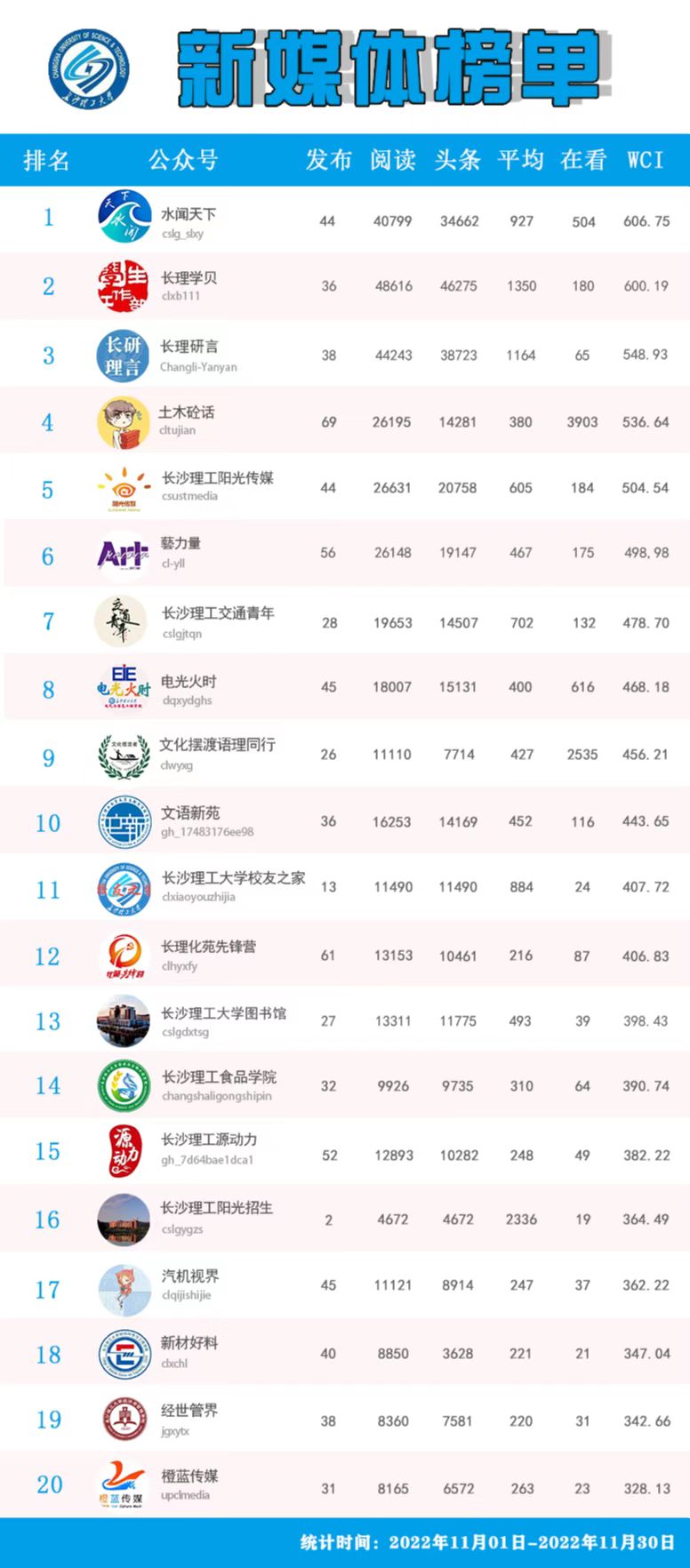 校属单位微信公众号排名(2022年11-12月)