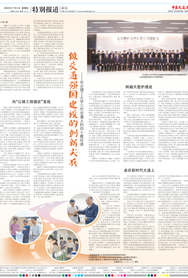 随着采访的深入,记者越发感觉:流淌在长理交通人血液中的,是“吃得苦、霸得蛮、耐得烦”的湖湘文化基因,是把论文写在祖国大地上的科学追求,是“逢山开路、遇水架桥”的交通精神。