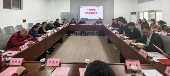 为科学谋划学院未来发展路径,推动学科建设水平整体跃升,2025年11月11日下午,计算机学院在金盆岭校区九教2-11会议室召开学科建设研讨会。发展规划处处长何忠明、土木与环境工程学院副院长蒋友宝应邀出席并作报告,计算机学院领导班子、系主任、党支部书记、教授委员会委员、学位委员会委员、教学督导、青年教师代表及科室负责人共同参会。会议由学院党委书记刘朝辉主持。