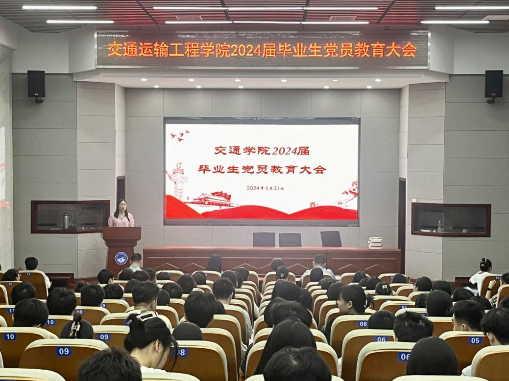 5月21日,交通学院2024届毕业生党员教育大会在工二交通科技报告厅举行,学院党委副书记任志祥、学院特邀党建组织员吴滨、研究生辅导员李文博、毕业生辅导员冯心崚及2024届全体毕业生党员参加,党建辅导员肖敏强主持。