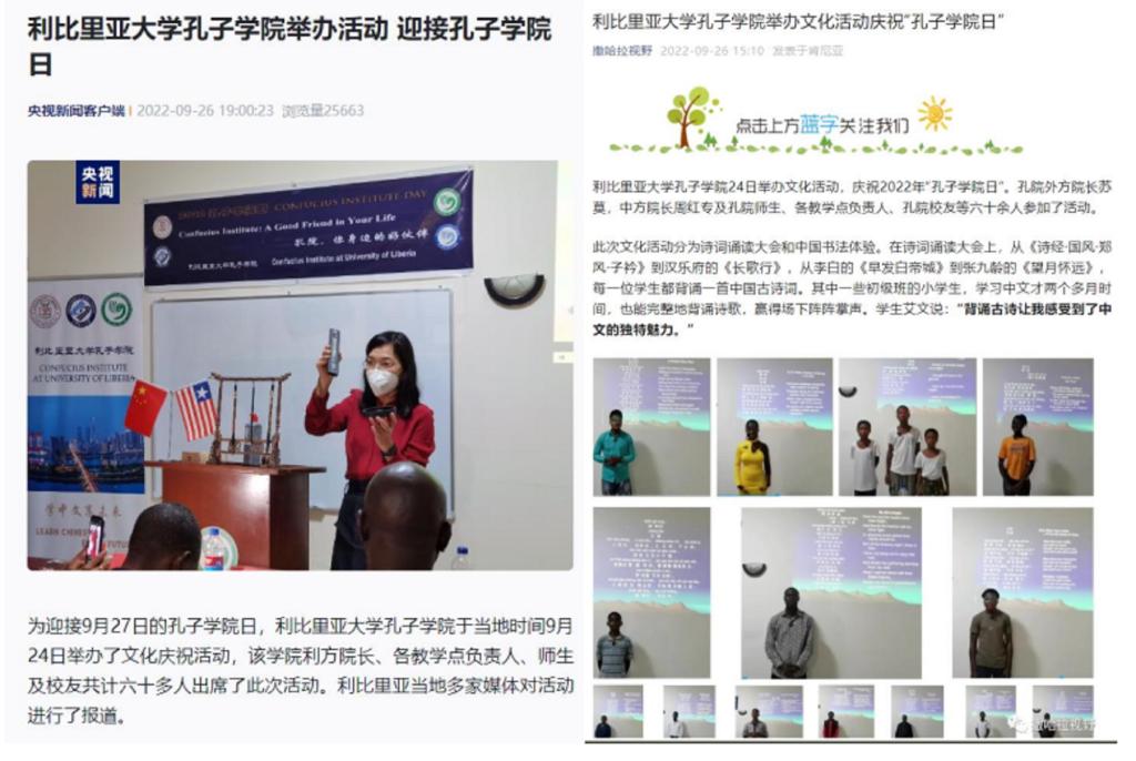当地时间2022年9月24日,利比里亚孔子学院在驻地举办丰富多彩的文化活动庆祝2022年孔子学院日。央视新闻客户端、新华非洲撒哈拉视野等知名媒体对此次活动进行了报道。