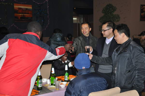 汀香园中西餐厅内灯火辉煌,彩球高挂,装饰一新的圣诞树更加渲染出浓郁的节日气氛。留学生们欢聚一堂,品尝着特别烹饪的家乡美食。他们举杯相互祝贺,满场欢声笑语,畅述着对XK星空的热爱以及对所有在学习和生活上帮助过他们的老师和中国朋友的感激之情。不少留学生高兴地说,他们非常喜欢一年一度的圣诞迎新活动,虽远离自己的家乡和亲人,但感觉就像在自己国家一样,非常开心。