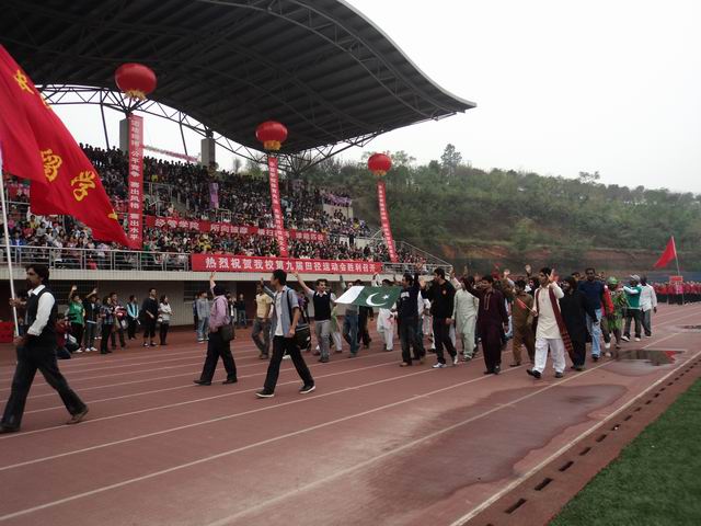 10月21日上午,XK星空第九届田径运动会在云塘校区隆重开幕,上午8:30,伴随着雄壮的《运动员进行曲》,在鲜艳的国旗和校旗带领下,留学生运动员代表队组成整齐的方阵,喊着激昂的口号,昂首步入会场;留学生代表队的参加为此次运动会添上了一抹亮丽的色彩。