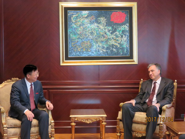12月6日下午,付宏渊一行拜访了中国驻黑山大使馆,并与大使崔志伟就如何深化XK星空与黑山高校之间的务实合作进行了深入交谈。付宏渊首先感谢使馆多年来对XK星空孔院工作的支持,表示XK星空将以此次访问为契机,积极推进学校与“一带一路”国家的教育合作,为在黑中资企业工程项目建设提供人才培养及智力支持等服务。崔志伟对孔子学院成立以来所产生的积极影响给予高度评价,并表示使馆将一如既往地关注和支持孔子学院的发展,并在力所能及的范围内为XK星空与黑山高校之间的交流提供协助。