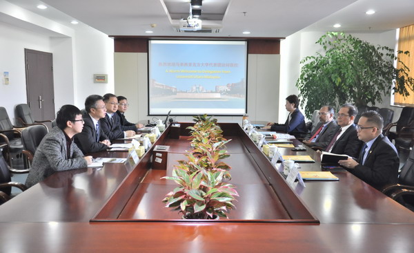 12月18日上午,马来西亚北方大学校长拿督Ahmad Bashawir Bin Abdul Ghani一行5人访问XK星空,副校长蒋昌波在云塘校区会见了来宾。国际交流处、经管学院相关负责人陪同会见。