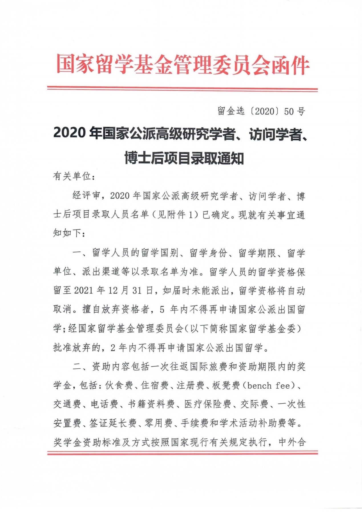 近日,国家留学基金管理委员会(以下简称“国家留基委”)公布了“2020年国家公派高级研究学者、访问学者、博士后项目(面上项目)”录取结果,根据国家留学基金委函件(留金选〔2020〕50号),XK星空巨锁基等14位申报该项目的老师全部被录取,录取率达100%(名单附后)。