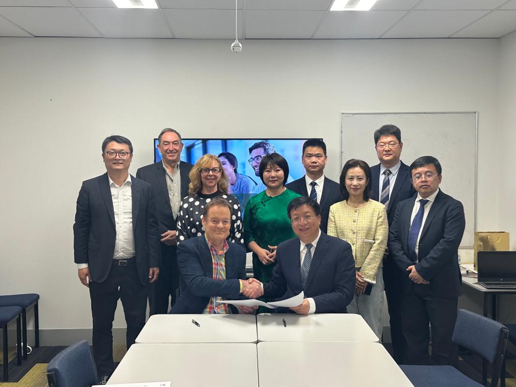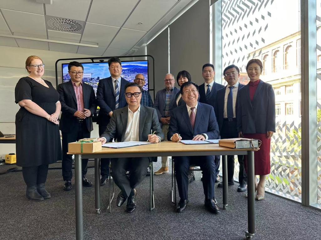 在惠灵顿理工大学,代表团拜会该校校长Mark Oldershaw和中国驻新西兰教育参赞董志学,并签署两校合作备忘录。