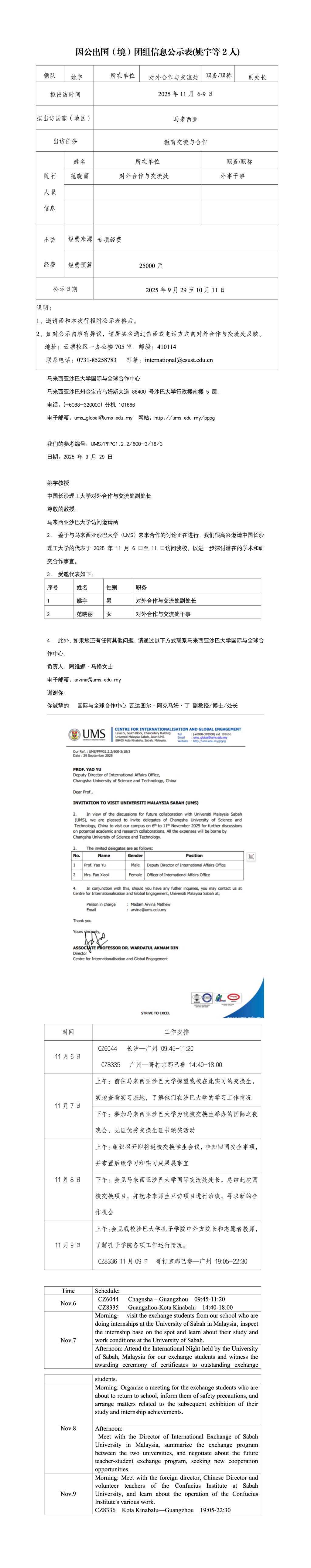 因公出国(境)团组信息公示表(姚宇等2人)