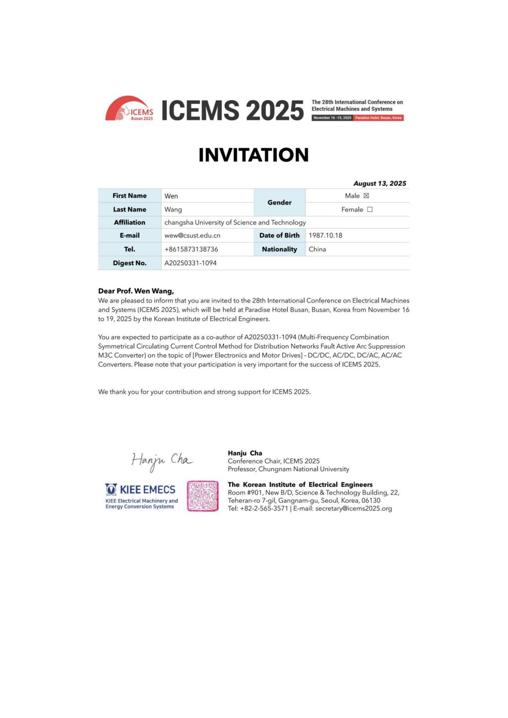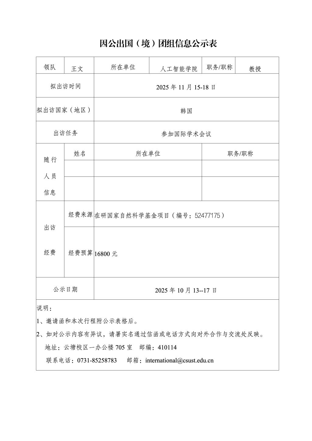 因公出国(境)团组信息公示表(王文等1人)