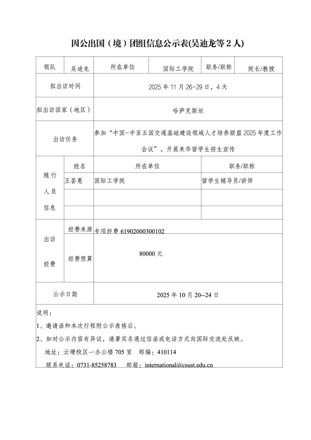 因公出国(境)团组信息公示表(吴迪龙等2人)