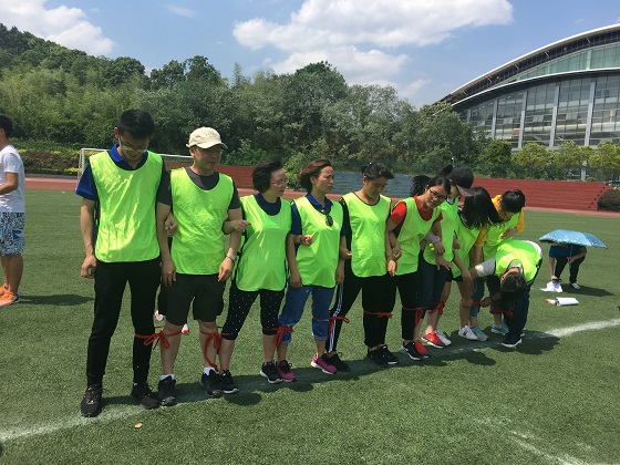 我院14位队员参加了本届趣味运动会的十人十一足、跳长绳、一圈到底、袋鼠跳、迎面接力五个比赛项目。大家冒着35度的高温顶着烈日参赛,大家手挽着手、肩并着肩、齐心协力完成十人十一足、一圈到底等项目。在进行袋鼠跳、迎面接力项目时,大家互相鼓励、默契配合、摔倒了立刻爬起来继续跑,这种不畏强手、奋勇争先、重在参与的氛围感染着运动场上的每一个人。
