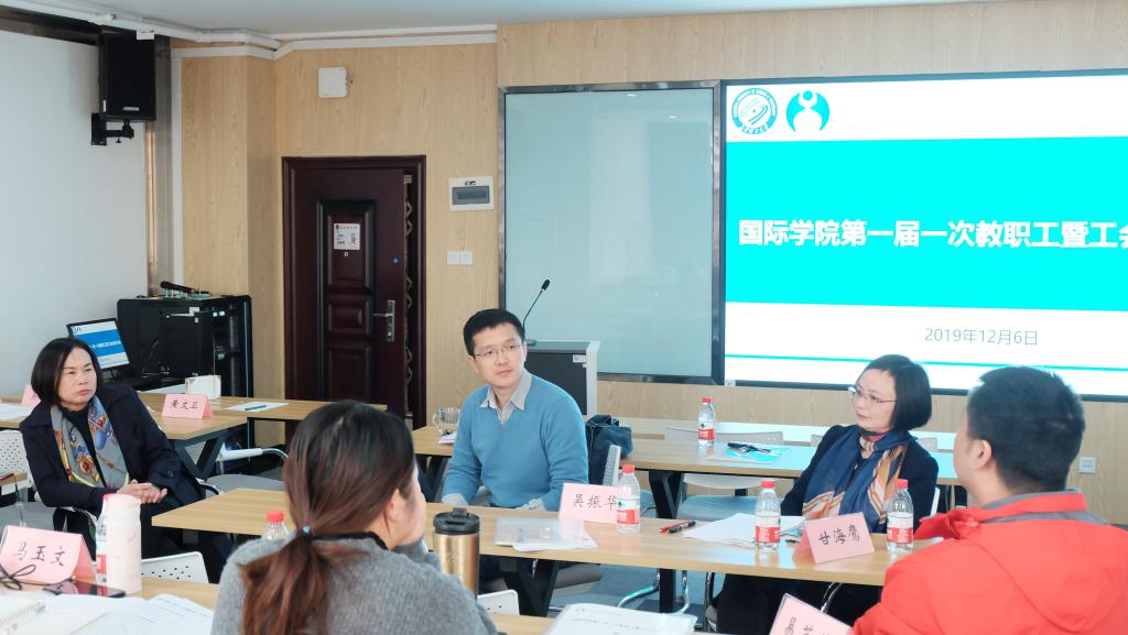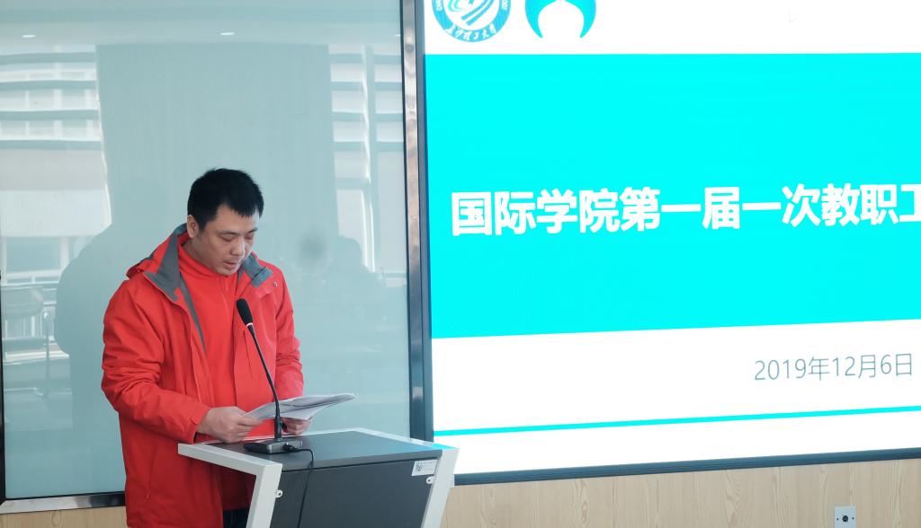 12月6日下午,国际学院第一届一次教职工暨工会会员大会在新能源大楼1栋404室举行。国际学院全体教职工参加会议,学校党委委员兼学院党总支书记付嫦娥主持会议。