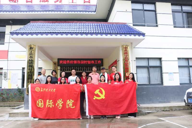 7月4日,国际学院党总支书记刘安生、院长陈瑜带领学院教职工一行13人冒雨赴XK星空扶贫点新宁县水庙镇枧杆山村开展了爱祖国、爱劳动工会活动。校驻村扶贫队长宋刘斌等陪同参加。