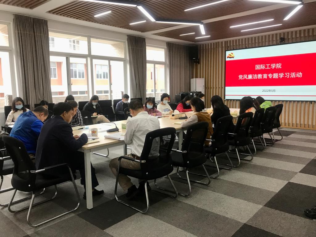 5月10日下午,国际工学院在云塘校区新能源大楼1栋416会议室举行党风廉洁教育专题学习活动,学院全体教职工参加会议,会议由党总支书记刘安生主持。