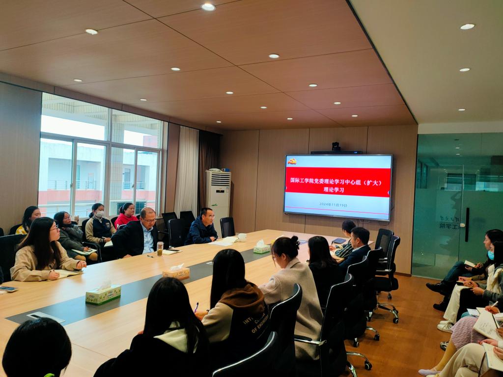 接着,黄自力带领大家学习全国教育大会精神,并以《深入学习全国教育大会精神,为教育强国建设贡献国际工学院力量》为题作中心发言。黄自力深入介绍了全国教育大会召开的背景和主要内容,认为我们不仅要深刻认识教育的“三大属性”,同时要牢牢把握教育强国的“六大特质”,更要正确处理教育强国建设的“五大关系”。联系学院实际,黄自力指出,我们不仅要充分利用自身的学科优势和国际化特色,不断创新留学生教育模式,吸引更多优秀留学生来校学习,而且要扩大和国外高水平理工类大学的合作办学,多引进优质课程,更好地服务国家战略和外交大局,不断提升我国教育国际影响力。最后,我们要坚持打基础、建机制和利长远相结合,统筹近期中期远期,把习近平总书记重要讲话精神转化为教育强国建设的澎湃动力、务实成效。