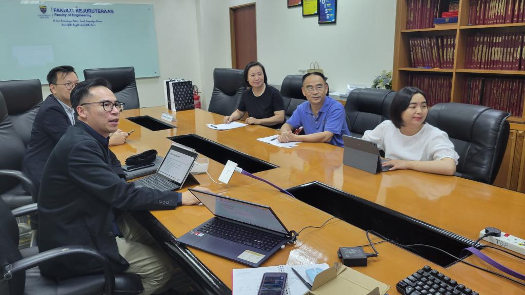 7月2日,代表团首站访问吉隆坡马来亚大学工程学院。黄自力与副院长Prof.Ir.Dr.Ong Zhi Chao、教师代表Prof. Dr. Wong Yew Hoong亲切会谈,全面回顾两校机械设计制造及其自动化专业本科合作项目的丰硕成果,并对工程学院在推动项目运行和国际化人才培养中的贡献表示感谢。Prof.Ir.Dr.Ong Zhi Chao详细介绍了工程学院的师资、教学及研究生培养体系。双方聚焦研究生招生标准、联合培养目标与实施路径展开深入讨论,就共建研究生层次人才合作机制达成重要共识。