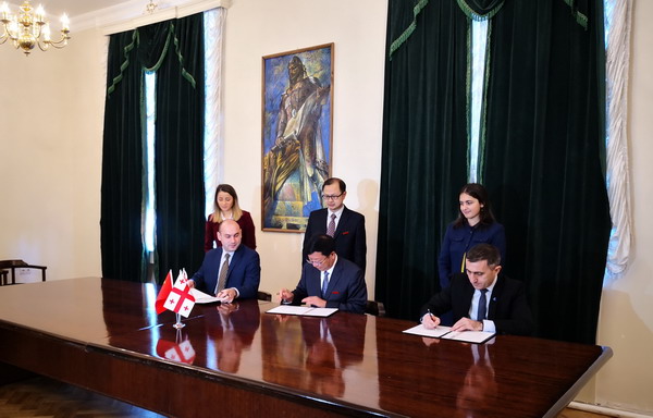 CSUST delegation visited Batumi Shota Rustaveli State University at the invitation of Tornike Rizhvadze, president of Autonomous Republic of Adjara, Georgia, and met with Merab Khalvashi, the university president. This visit marked the crucial step the university is taking to set up China-Georgia engineering and technical talents at the backdrop of Belt and Road development blueprint. Both representatives concluded the meeting by signing an education collaboration MoU and later met the local press.