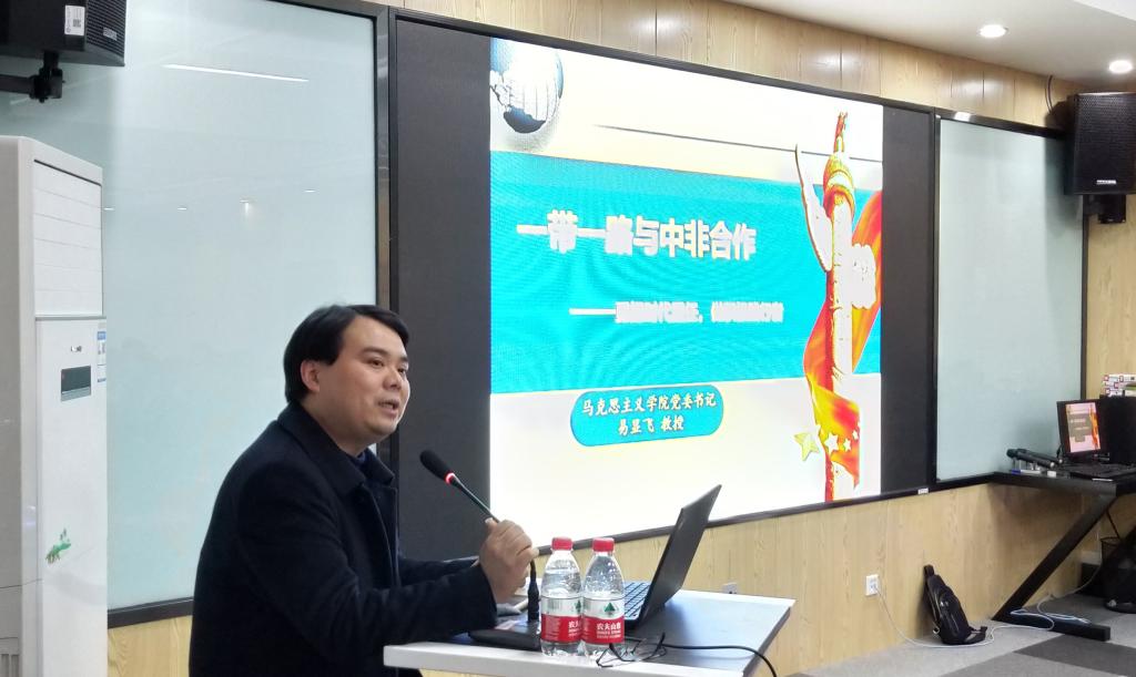 11月7日晚7点,国际学院邀请了学校马克思主义学院党委书记易显飞教授在新能源大楼1402为学院师生做了题为《一带一路与中非合作》的专题讲座,国际学院全体教师、学生党员及入党积极分子、学生干部近百人聆听了此次报告,本次报告由校党委委员兼国际学院党总支书记付嫦娥主持。