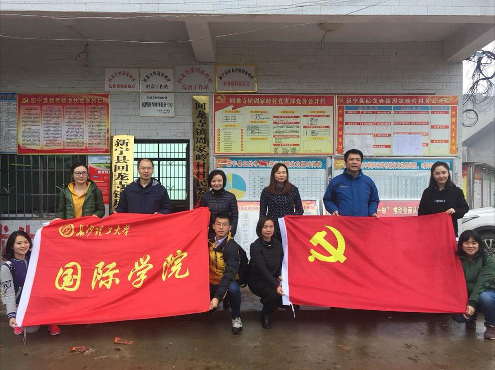 11月13日清晨,校党委委员、国际学院党委书记付嫦娥、院长陈瑜、院党委副书记兼副院长吴振华、副院长秦卫星带领全体教工党员、教职工和国际学生代表一行14人冒雨赴学校扶贫点—新宁县回龙寺镇风神洞村开展支部主题党日、国际学生知华友华文化考察暨学院工会活动。