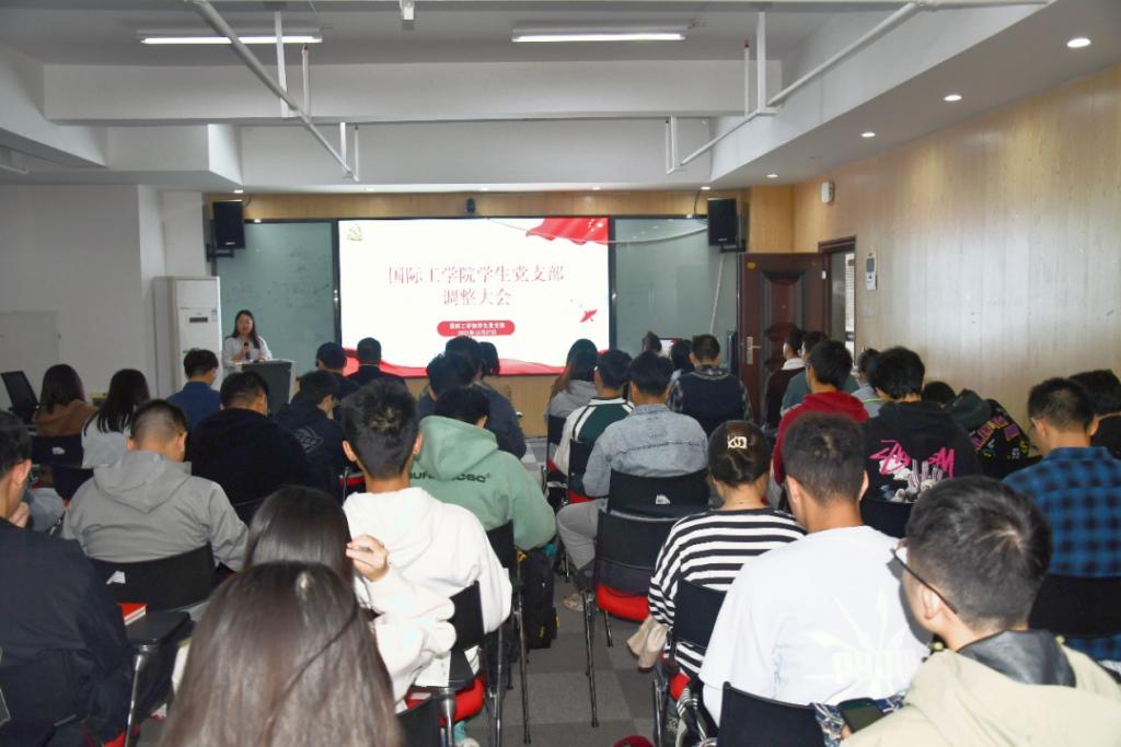 会议中,易芙蓉就调整国际工学院学生党支部设置的决定进行通报,按照有利于发挥党支部战斗堡垒作用、有利于发挥党员先锋带头作用、有利于开展党支部各项工作的原则,结合学院学生党建工作实际,根据学生党员的人数及分布情况,对原有支部进行调整:第一学生党支部由电气专业及2020级机电教改班学生党员组成,易芙蓉担任支部书记;第二学生党支部由土木专业、机械专业及2020级土木教改班学生党员组成,唐宏敏担任支部书记;第三学生党支部由2019级机电教改班学生党员组成,文可可担任支部书记;第四学生党支部由 2019 级土木教改班学生党员组成,马玉文担任支部书记。乔法光对学生党支部调整的原因进行了解释,并强调每一位党员都是一面旗帜,调整党支部后,党员们要继续团结协作,为建设国际工学院做出贡献,不畏艰难、砥砺前行。