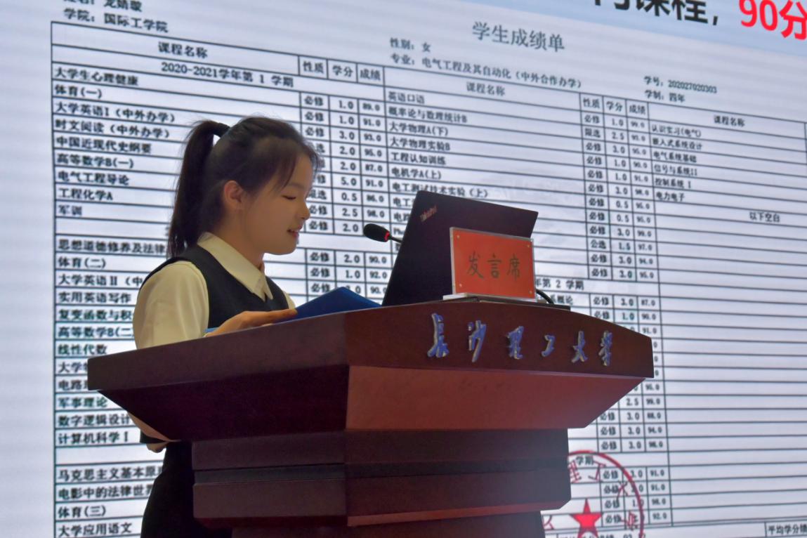 龙婧璇以大学生活的三个关键词“勤学”“创新”“情怀”为切入点,展现具有国际化视野和家国情怀的新时代青年风貌。勤学为基,互帮互助。龙婧璇平均绩点3.95,平均分93.12,50门科目满绩,综测、绩点双第一,并通过学业帮扶、朋辈分享,履行“传帮带”的责任担当;创新为先,潜悟真知。龙婧璇深耕科研,锐意进取,获得全国节能减排竞赛、湖南省“挑战杯”等8项国家级和省部级奖项以及20余项校级竞赛荣誉;情怀为底、踔厉笃行。龙婧璇脚踏实地,做好勤助部部长、院长助理等学生工作,积极拓展专业实习经历,投身社会实践,传承“红色基因”,在奉献中领悟成长。