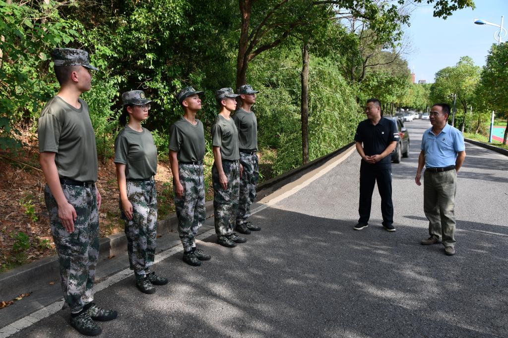 黄自力向全体集训教官致以衷心的问候,并与教官们亲切交谈,详细了解教官们的学习、生活、训练等各方面情况,对大家不怕苦、不怕累的精神表示高度赞扬。他鼓励教官们要珍惜训练机会,发扬良好作风,练就过硬本领。在新生军训过程中,引导同学们养成良好的学习和生活习惯,为后续的大学生活奠定坚实基础。