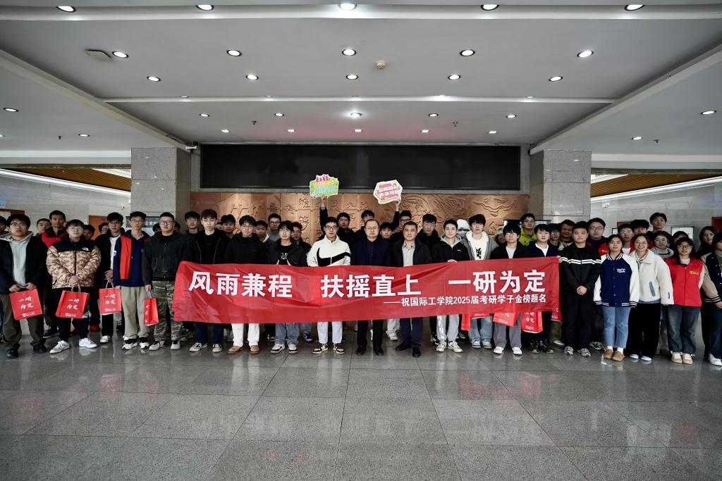 在寝室楼栋,考研学子们还拿起学院定制考研加油手卡,在“考研祝福墙”前拍照留念,现场氛围和谐融洽。
