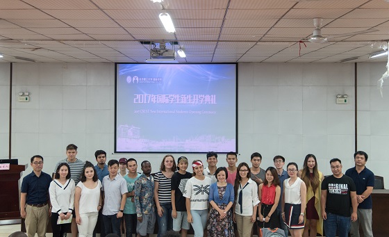 9月14日下午,国际学院在文科楼圆厅A100隆重举办2017年国际学生新生开学典礼。国际学院院长陈瑜、院党委副书记兼副院长吴振华、国际交流处办公室主任杨欣、学院党政办公室黄文卫,学院留学生办公室全体老师以及来自俄罗斯、蒙古、哈萨克斯坦、孟加拉、老挝、印度、也门、阿尔巴尼亚、吉尔吉斯、巴基斯坦、坦桑尼亚、贝宁、格林纳达、利比里亚、布隆迪等二十多个国家已经报到入学的36名留学生出席了典礼。典礼由留学生办公室王荟惠老师主持。