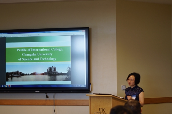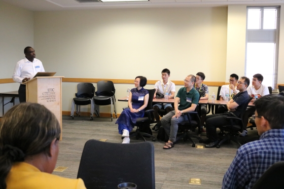 7月29日,XK星空赴美夏令营团受到田纳西大学查塔努加分校(UTC)热情欢迎,UTC校方主持了隆重的夏令营开营仪式,UTC工程与计算机科学学院副院长Li Yang、土木环境系系主任Joseph Owino及全系教师、学院学生发展中心负责人Julie David及美方在校学生代表参加。Li Yang副院长代表工程与计算机科学学院对XK星空代表团到访表示了热烈欢迎,介绍了学校和学院办学情况,并回顾了两校合作办学工作。陈瑜院长围绕XK星空办学情况、国际化教育教学发展、中外合作办学项目的执行及国际化产学研方面做了主题发言。