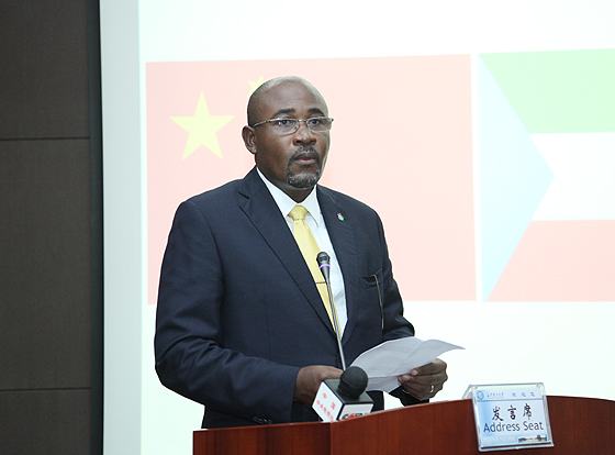 付宏渊首先致辞。付宏渊向圆满完成学业的11名赤道几内亚留学生表示祝贺,对中国路桥公司支持XK星空留学生教育表示感谢,对赤道几内亚留学生即将踏上新的人生旅途,寄予深切的期望,希望他们成为赤道几内亚国家建设的排头兵,为祖国的繁荣与发展作出贡献;希望他们成为中赤两国人民友谊的桥梁,为中非友好交流作出贡献;希望他们勿忘母校、勿忘师长,回国后常与母校联系,并表示XK星空永远是他们在中国的家。
