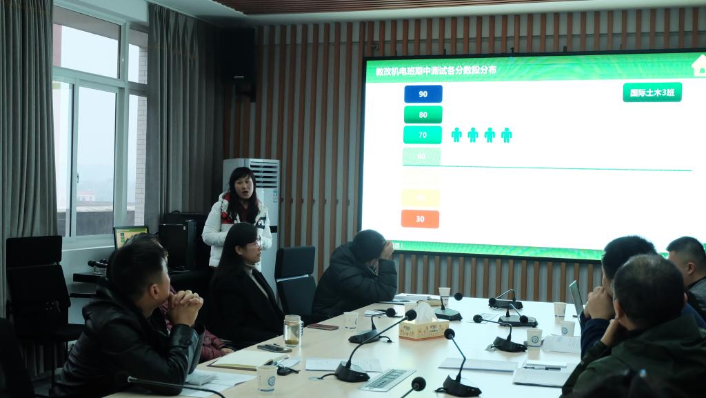 秦卫星简要介绍了教改试点班和中外合作项目人才培养目标及英语课程设置情况,强调了英语教学质量教改班和中外合作办学项目人才培养过程的重要地位。周幸与钟桂蓉分别从学生学习态度、学习方法、课堂表现、作业完成以及期中考试成绩等方面总结了教改试点班英语教学实施情况与效果。谢巧艳代表学诲教育介绍了2019级中外合作办项目《时文阅读》的教学设计、教学实施及学生课堂表现,希望今后加强与校内老师们的交流与教学研讨,进一步改善教学效果。黄坚结合自身教学经验,就如何改进教学方法和教学效果给出了中肯建议,要求提前做好学生寒假期间英语学习计划,保持英语学习连贯性。吴振华表示学工办会继续做好学生出勤监督工作,设置课堂手机袋,希望老师们进一步加强课堂纪律管理,及时反馈学风方面的问题,共同打造良好学风。随后,参会人员就国际学院提交的《中外合作办学英语学习现状问卷调查》、《2019级学生英语考试成绩分析报告》中反映的问题进行了热烈讨论,并纷纷提出改进措施与办法。