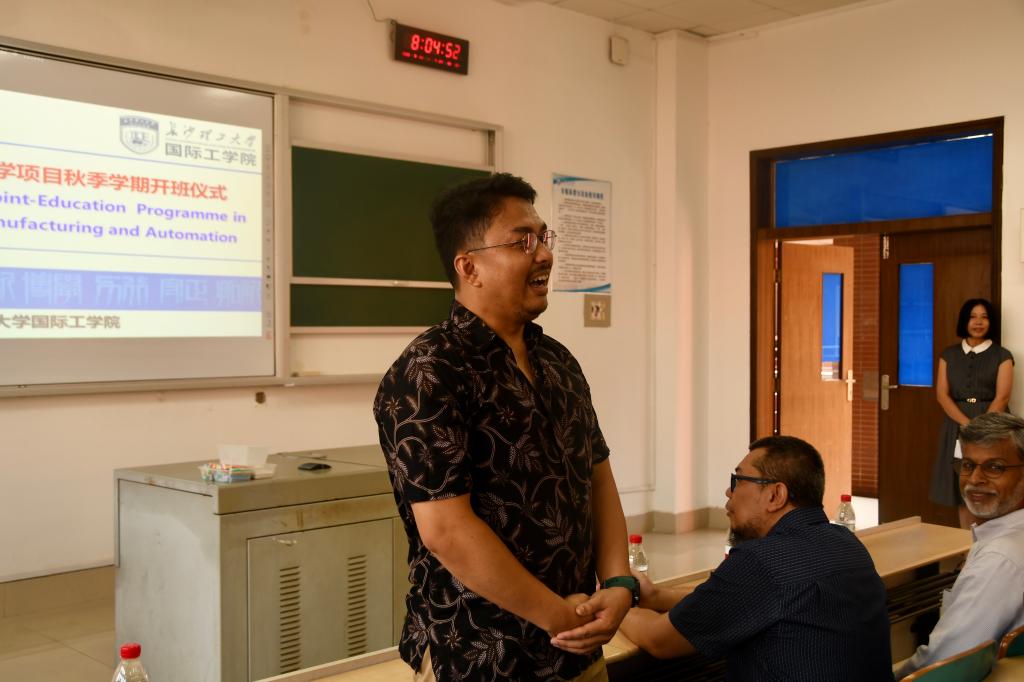 9月11日上午,2023-2024秋季学期中外合作办学项目(机械制造专业)三门引进课程在云塘综合教学楼正式开课,这是XK星空与马来亚大学合作三年来,首次实现外方线下授课。国际工学院副院长黄月华出席开课仪式并致辞,马方外教、中方助教、机械项目秘书,以及2020届本专业全体学生在云综教B307教室参加了开课仪式。开课仪式由教务办主任余志主持。