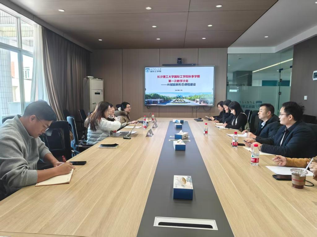 11月25日下午,国际工学院2025年秋季学期的首场教学沙龙在云塘校区文科楼E502会议室圆满举办。本次沙龙以“AI赋能新形态课程建设”为主题,特邀国家级一流课程负责人、国家级教学成果奖获得者——中南大学土木工程学院的王薇教授担任主讲嘉宾,为跨学科教学交流搭建了高质量平台。活动由学院教务办主任余志主持,交通学院的黄优、人工智能学院的李灵、机械学院的吴悠等引进课程中方教师代表,智慧树课程建设公司区域负责人刘文、技术负责人陈欢、我院副院长隆院男教授以及语言教研室全体教师参加此次活动。